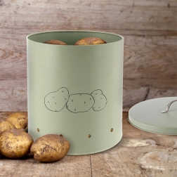 Capacul practic limitează eficient accesul luminii și astfel previne încolțirea cartofilor. Grafica minimalistă cu cartofi de pe partea frontală sugerează ce depozitați în interior și, în același timp, adaugă un element decorativ bucătăriei.