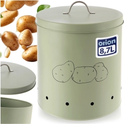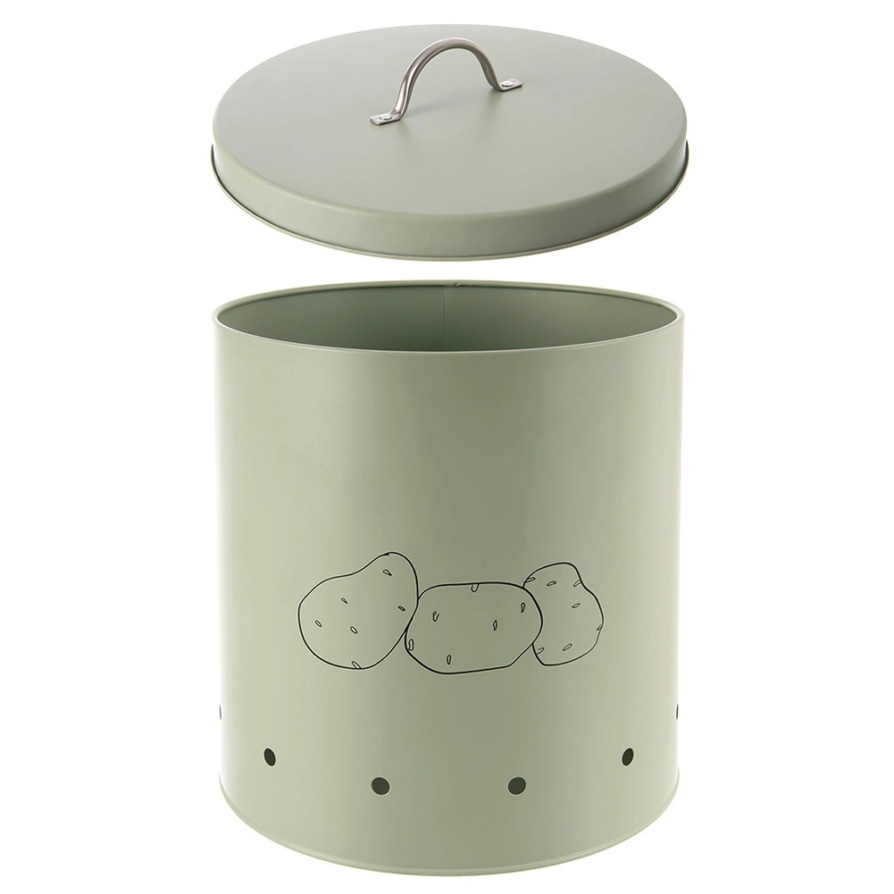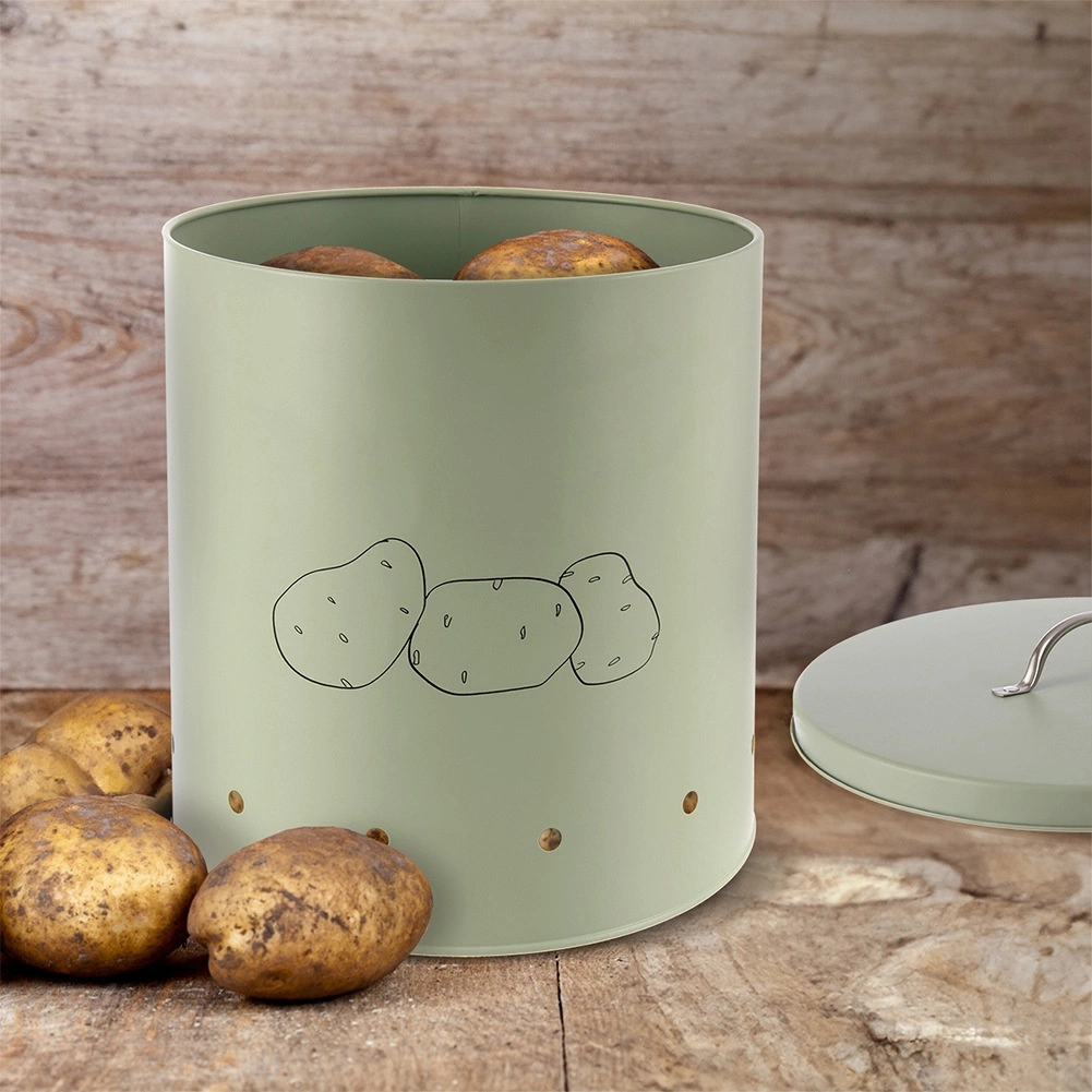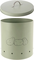 Păstrați cartofii, ceapa sau fructele ordonat și igienic. Această cutie spațioasă de 8,7 l este fabricată din metal de calitate, în culoare verde pastel delicată, și este completată de un mâner argintiu. Orificiile de ventilație perimetrale asigură o circulație optimă a aerului, astfel încât alimentele rămân proaspete mai mult timp și sunt mai puțin expuse umidității sau mucegăirii.