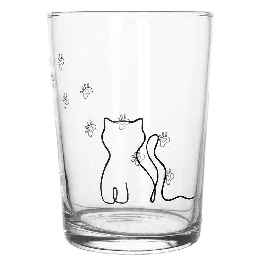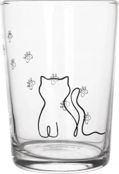 Acest pahar mare, cu imprimeu de pisică și lăbuțe, va bucura atât copiii, cât și adulții. Datorită volumului universal de 500 ml, este excelent pentru băuturi reci și calde, de la apă și limonadă de casă până la cacao sau ceai. Construcția robustă din sticlă groasă asigură o durată de viață îndelungată și o utilizare confortabilă zi de zi.