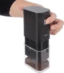 Această râșniță modernă de cafea este ideală pentru iubitorii de cafea proaspăt măcinată. Datorită dimensiunilor compacte 8 × 5,5 × 16 cm încape în orice bucătărie, iar acumulatorul permite folosirea oriunde, fără cablu. Încărcarea USB‑C (cablu inclus în pachet) și indicatorul LED al stării asigură utilizare comodă în fiecare zi.