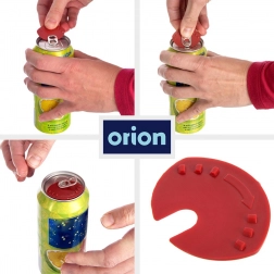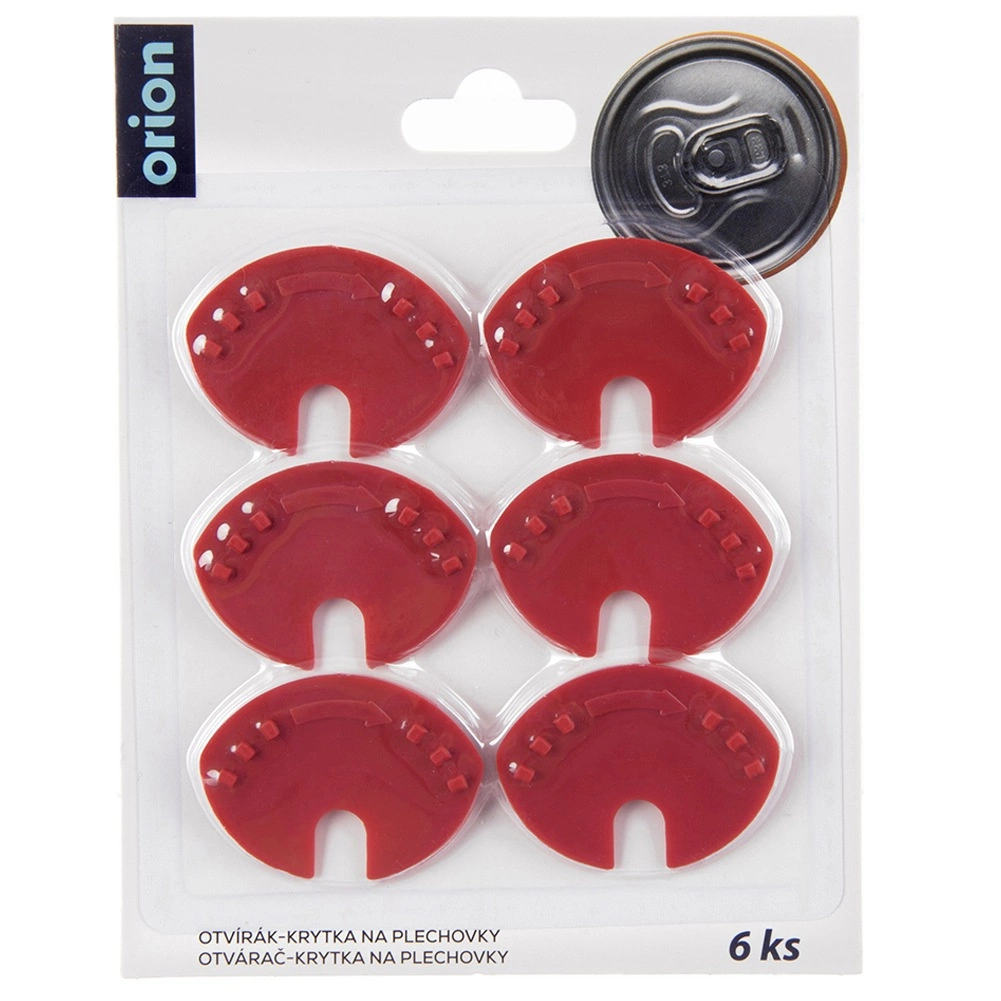Setul combină deschizătorul și capacul într-un singur accesoriu inteligent. Piesa din plastic se introduce sub limbuță, iar decupajul se sprijină pe nitul central al capacului, permițând ridicarea în siguranță și confort a clapetei fără forță inutilă. După deschidere, este suficient să rotiți capacul pentru a acoperi orificiul – blocajul din decupaj se ancorează de nitul central, iar marginea se fixează pe buza dozei.