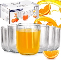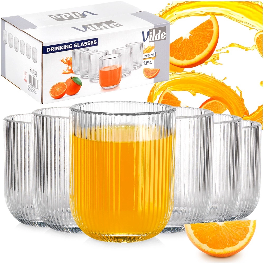 Striațiile verticale oferă paharelor un aspect modern și asigură o ținută sigură chiar și la băuturi reci cu condens.
