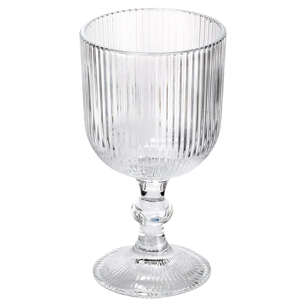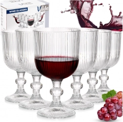 Elegantul set de 6 pahare din sticlă, cu volum de 340 ml, este ideal pentru servirea vinului alb și roșu, a apei, limonadelor sau a deserturilor. Paharele din sticlă de calitate, cu pereți groși, au un design striat pronunțat, o bază lată și stabilă și un picior ergonomic pentru o prindere sigură. Datorită designului atemporal, sunt potrivite atât pentru zilele obișnuite, cât și pentru ocazii festive și pot fi spălate la mașina de spălat vase.