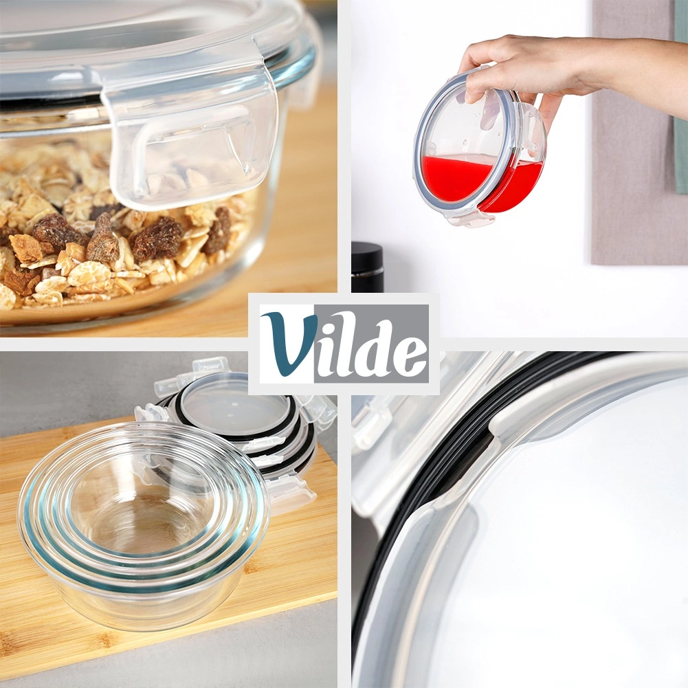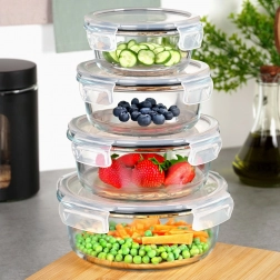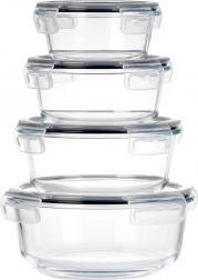 Setul de borcane din sticlă, cu patru cleme sigure și garnitură din silicon, păstrează alimentele proaspete mai mult timp și depozitate în siguranță. Sticla borosilicată de calitate este rezistentă la șocuri termice și nu absoarbe mirosuri sau culori. Recipientele sunt ideale pentru depozitare, transport și servire.