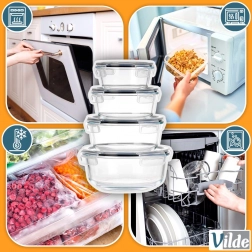 Sticla de calitate este igienică, nu absoarbe mirosuri și este potrivită pentru cuptor și cuptorul cu microunde (fără capac), precum și pentru mașina de spălat vase și congelator.