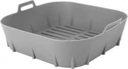 Inserția poate fi folosită nu doar în friteuză, ci și în cuptor, pentru reîncălzire și congelare a preparatelor. Două mânere integrate asigură transport și scoatere comode. Dimensiunea exterioară de 22 × 22 × 7 cm se potrivește coșurilor pătrate, iar fundul interior de 18 × 18 cm oferă spațiu suficient pentru cartofi prăjiți, legume, carne sau produse de panificație.
