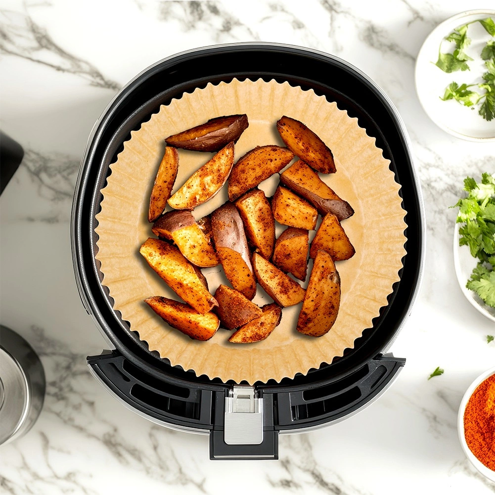 Datorită rezistenței la temperaturi ridicate, inserțiile sunt potrivite nu doar pentru air fryer, ci și pentru coacere în cuptor sau încălzire în cuptorul cu microunde. Sunt excelente pentru cartofi prăjiți, nuggets, cartofi copți, produse de patiserie sau deserturi mici. Construcția de unică folosință asigură curățenie fără frecare îndelungată.