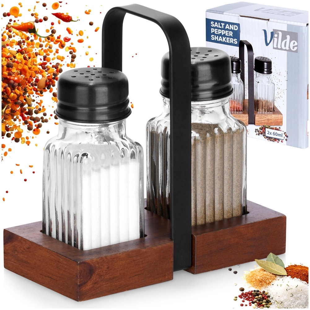 Acest set din 3 piese combină sticlă striată rezistentă, capace metalice solide și suport stabil din lemn cu mâner practic. Datorită capacelor perforate, veți doza condimentele precis și fără mizerie, iar închiderea păstrează prospețimea și aroma condimentelor pentru mai mult timp.
