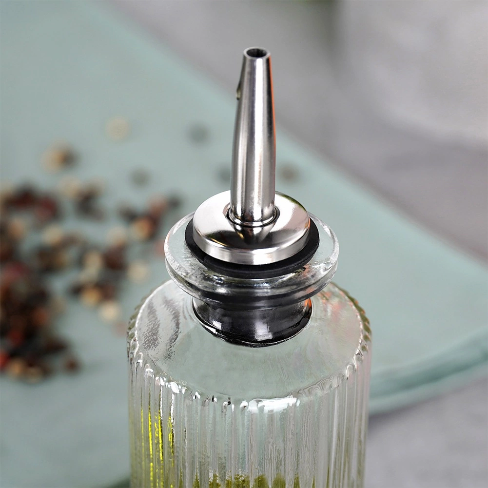 Vârful turnător conic din inox, cu etanșare din silicon, încetinește debitul și permite asezonare controlată și curată, fără scurgeri.