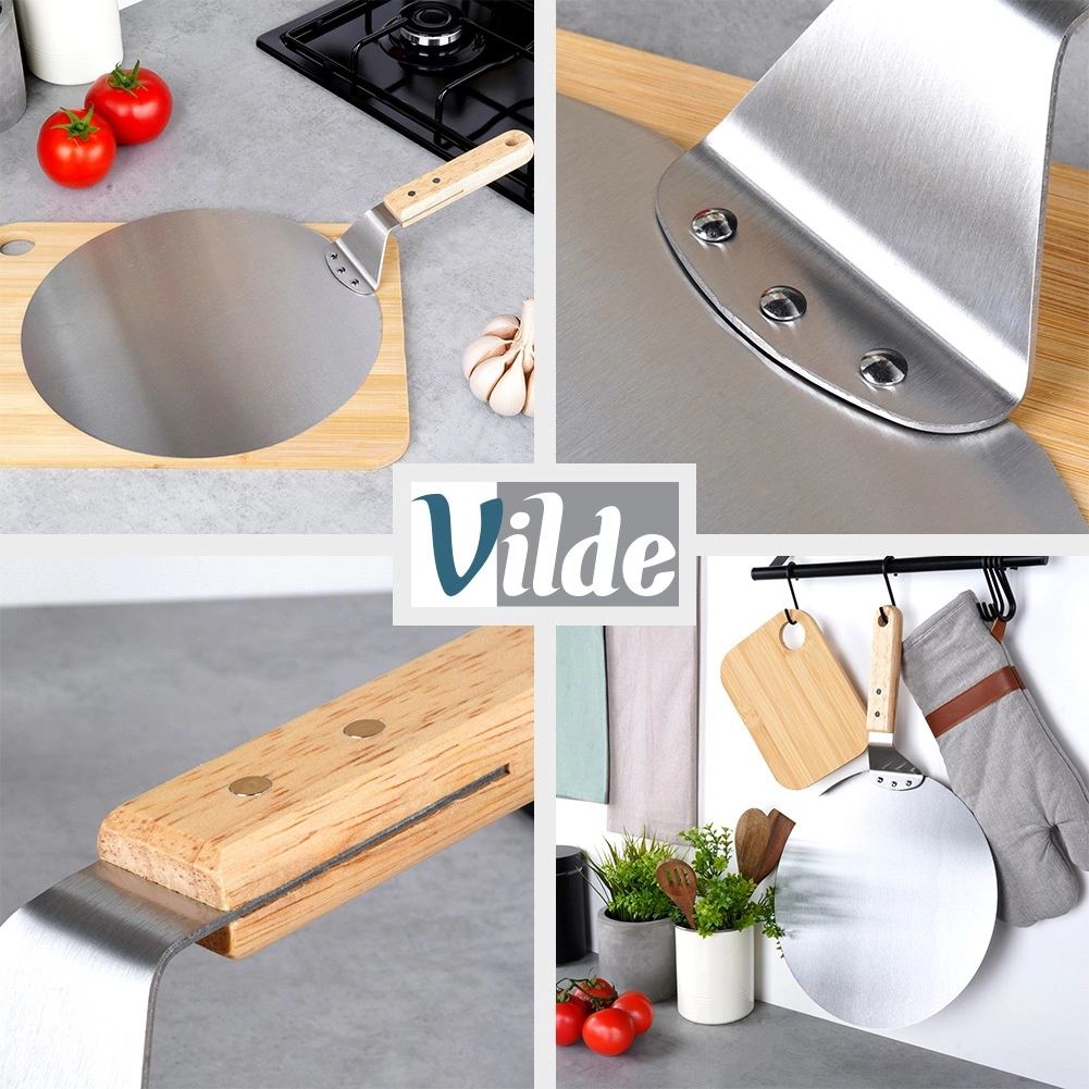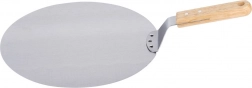 Această paletă rotundă din oțel pentru pizza cu dimensiunile 48,5 × 30,5 × 9 cm facilitează manipularea pizzei și a altor preparate coapte. Oțelul inoxidabil mat asigură durabilitate îndelungată și alunecare ușoară sub aluat, în timp ce mânerul din lemn oferă prindere sigură și confortabilă.