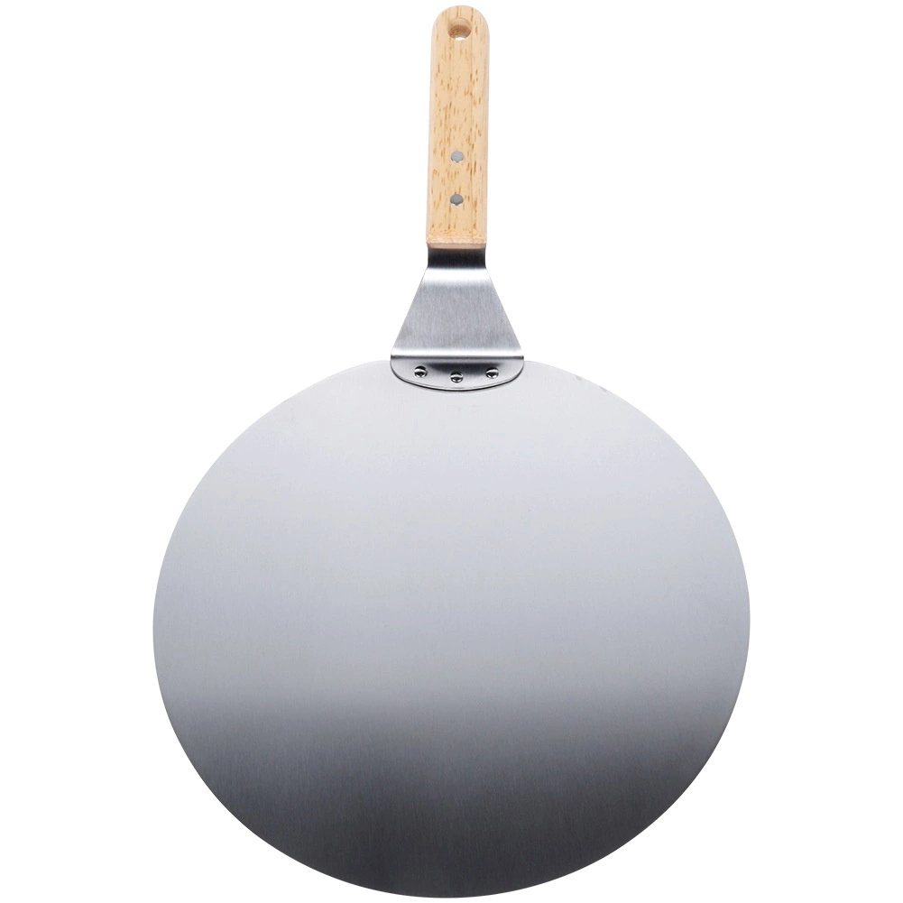 Discul mare rotund din oțel inoxidabil mat rezistă la căldură și deformare și alunecă ușor sub pizza sau pâine fără a rupe aluatul.