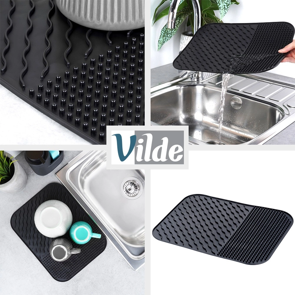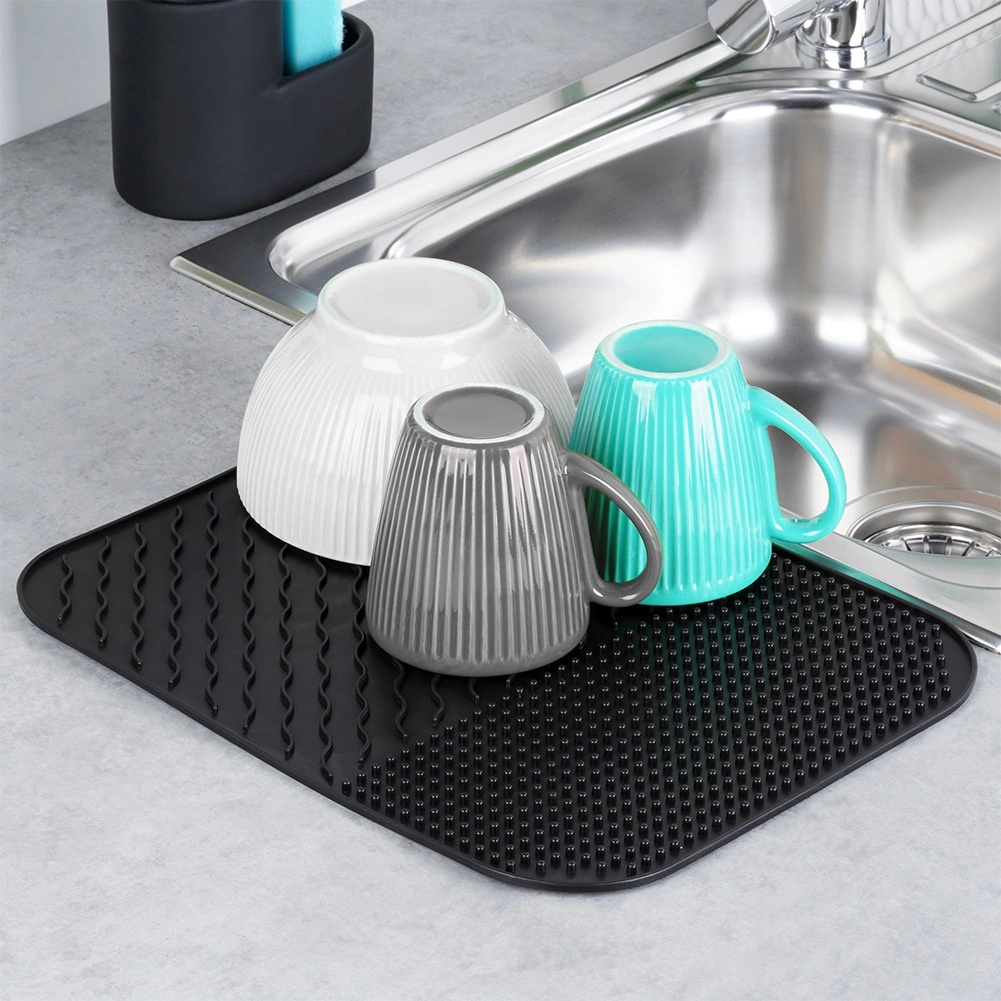 Alternativă elegantă și funcțională la uscătorul clasic. Tăvița din silicon cu dimensiunile 34 × 26,5 × 0,4 cm oferă suficient spațiu pentru uscarea vaselor, fără a ocupa mult loc. Designul minimalist, în negru, se potrivește oricărei bucătării și menține blatul curat și ordonat.