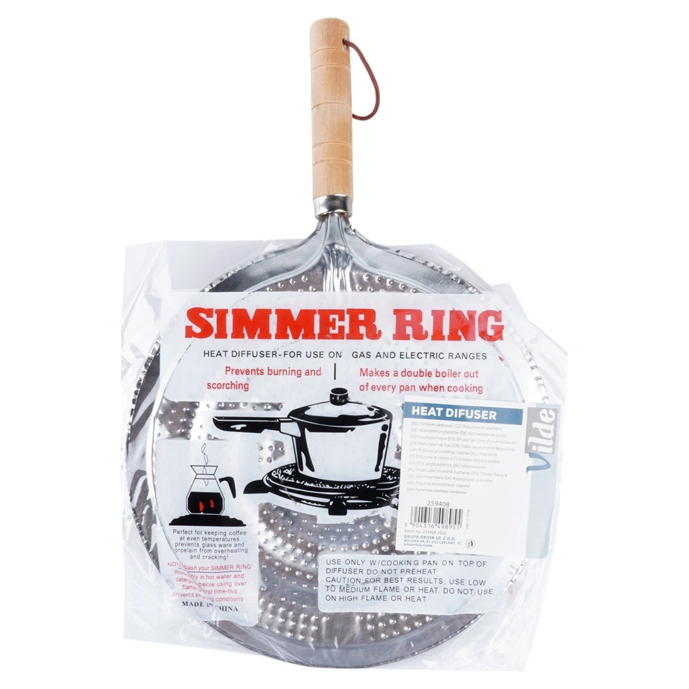 Difuzorul de căldură din metal de calitate, într-o nuanță elegantă argintie, este ideal pentru gătit delicat pe gaz. Suprafața perforată distribuie uniform căldura pe fundul oalei sau tigăii, eliminând arsurile și punctele fierbinți. Datorită acestui fapt, este o alegere excelentă pentru vasele din sticlă și ceramică, care nu trebuie să intre în contact cu flacăra directă.