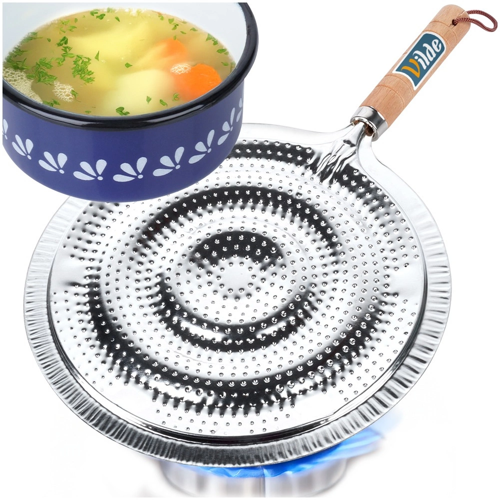 Protejează vasele sensibile de contactul direct cu flacăra și reduce riscul de crăpare. Perfect pentru gătit blând și înăbușire.