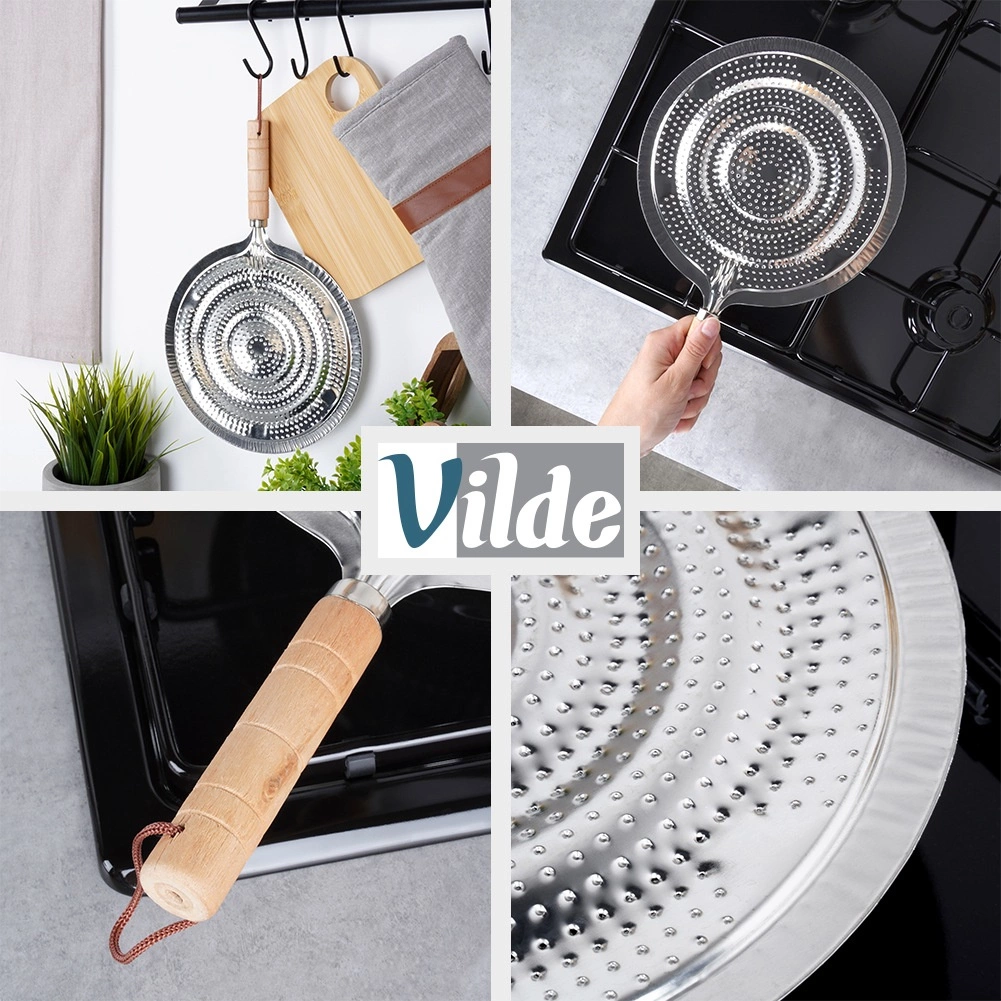 Mânerul ergonomic din lemn rămâne rece și facilitează manipularea sigură la așezarea și îndepărtarea de pe aragaz. Agățătoarea practică permite suspendarea și depozitarea ușoară. Construcția durabilă asigură o durată lungă de viață și performanță fiabilă la gătitul de zi cu zi.