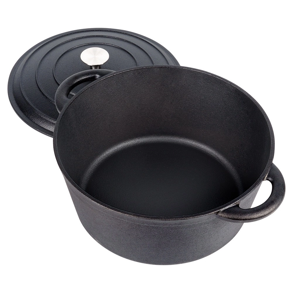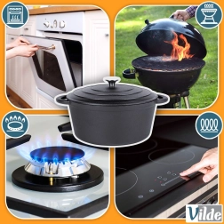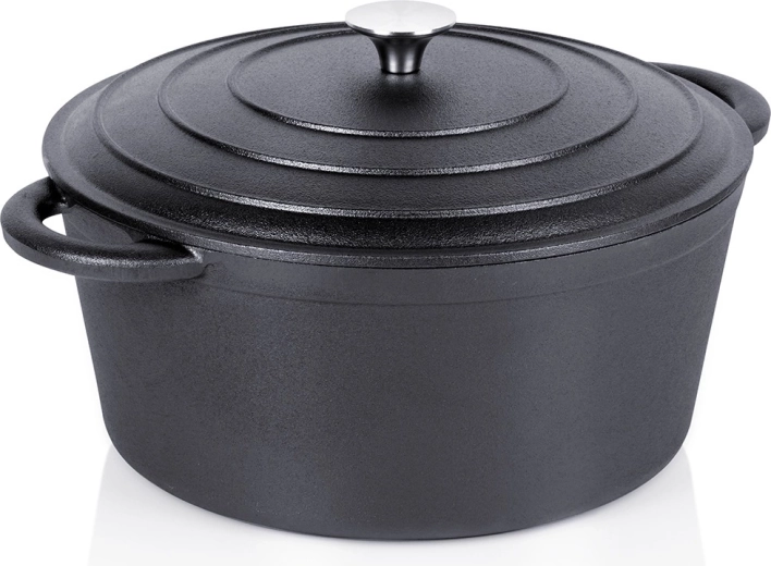 Oala este rezistentă la temperaturi înalte și este universală pentru fierbere, înăbușire, coacere și gratinare. O puteți folosi pe plite pe gaz, electrice, vitroceramice, halogene și pe inducție, în cuptor, pe grătar și direct deasupra focului – perfectă pentru bucătăria de acasă și pentru camping. Datorită conductivității excelente, puteți servi direct din oală, iar mâncarea rămâne caldă mai mult timp.