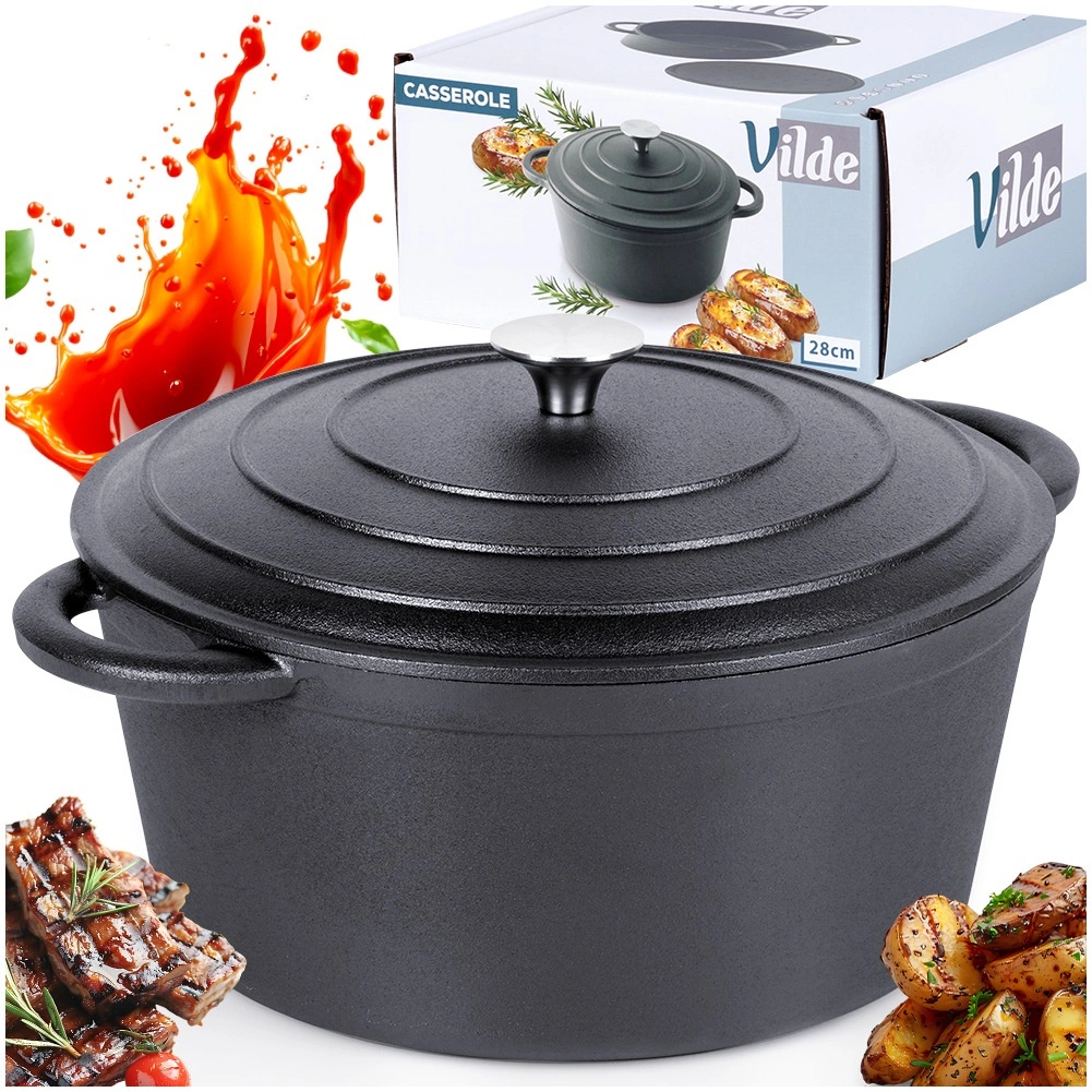 Sfat de întreținere: după fiecare utilizare, spălați oala, uscați-o bine și ungeți-o ușor cu ulei pentru a preveni apariția ruginii. Vasul nu are niciun strat antiaderent. Produs original marca VILDE din linia CAST LINE, fabricat în conformitate cu standardele europene.