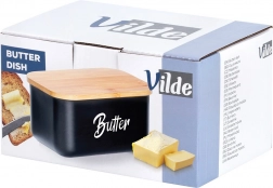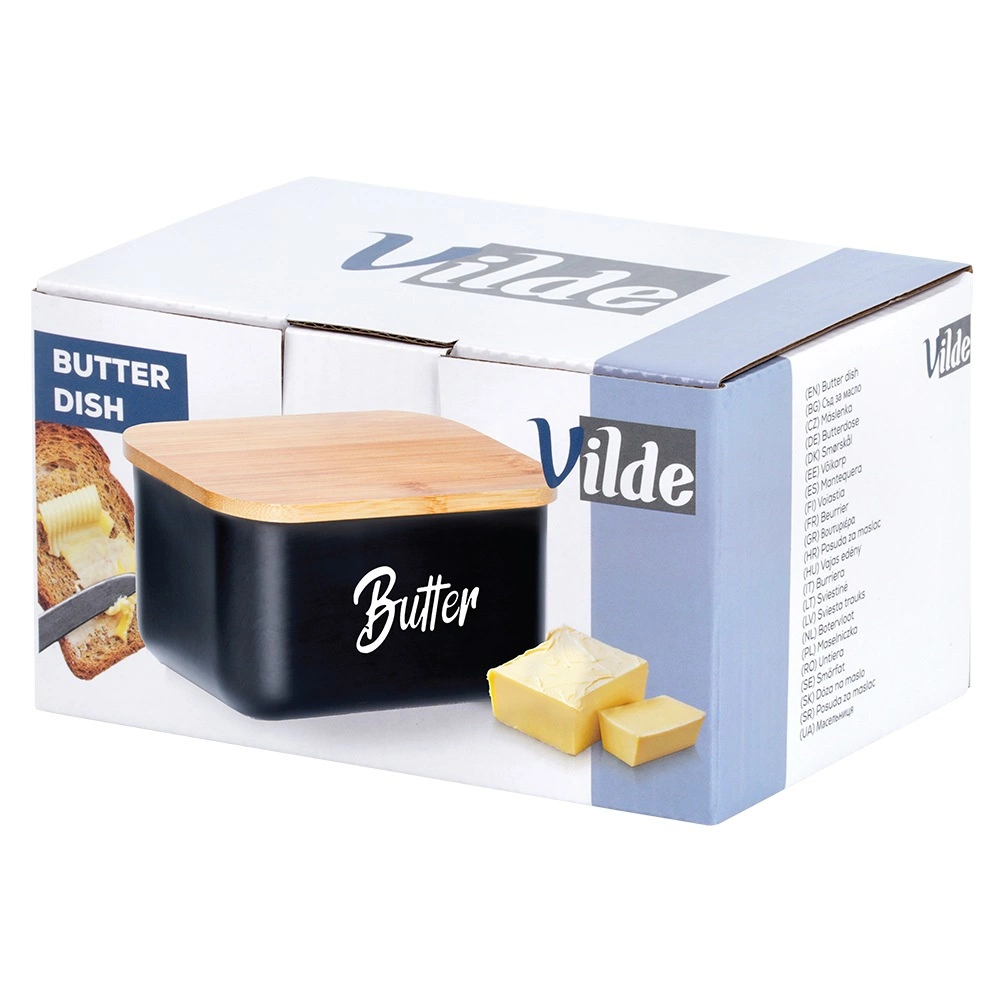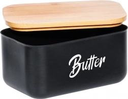 Acest untier practic combină aspectul modern cu funcționalitatea – oțel vopsit în negru cu inscripția albă „Butter” și bambus natural, formând un accesoriu atemporal pentru orice bucătărie. Datorită capacului, untul rămâne protejat, proaspăt și stabil din punct de vedere aromatic și este mereu gata de servire.