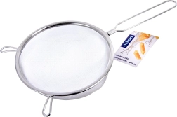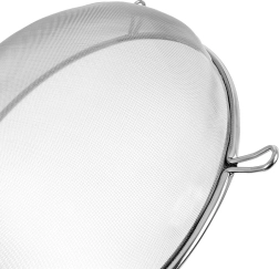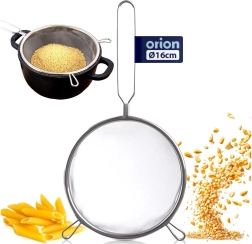 Strecurătoare fină din inox cu diametrul de 16 cm pentru gătit și copt zilnic. Plasă deasă, fin țesută reține chiar și cele mai mici particule, iar construcția robustă din oțel inoxidabil asigură durabilitate îndelungată, în timp ce prinderile practice permit sprijinul stabil pe oală sau bol. Compatibilă cu mașina de spălat vase pentru întreținere ușoară.
