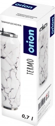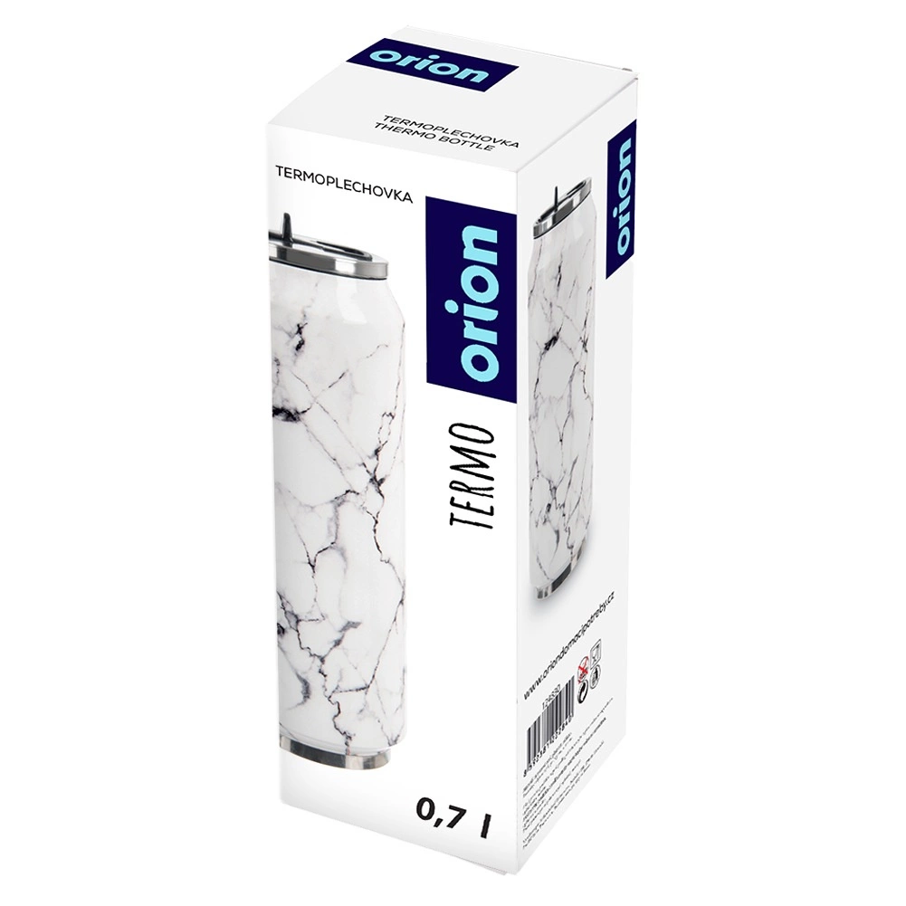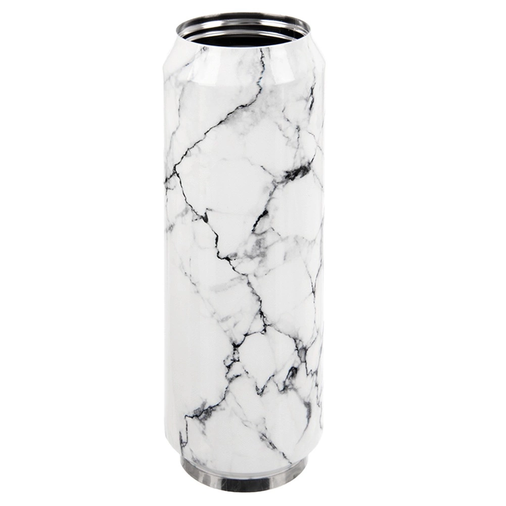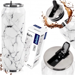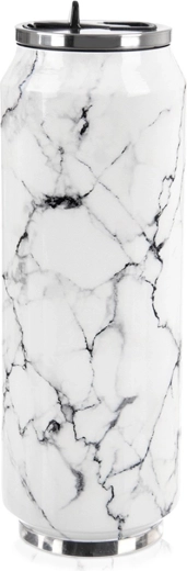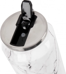 Termos elegant din oțel inoxidabil, alb, cu model marmorat, companion ideal la muncă, în mașină și în excursii. Capac practic cu muștiuc rabatabil și pai interior pentru băut comod fără înclinare. Garniturile din silicon etanșe previn scurgerile, astfel încât poți pune cana în siguranță în rucsac sau geantă.