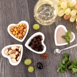- Snackuri, nuci, fructe uscate, dipuri, sosuri, mini deserturi