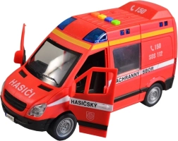 Această dubă de pompieri îi va încânta pe micii salvatori prin aspectul realist și funcțiile sale. La apăsarea butoanelor vei auzi vocea în limba cehă a dispeceratului și a echipajului și vei vedea girofarul intermitent. Datorită mecanismului inerțial, este suficient să împingi ușor mașina și pornește înainte.