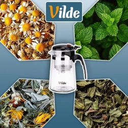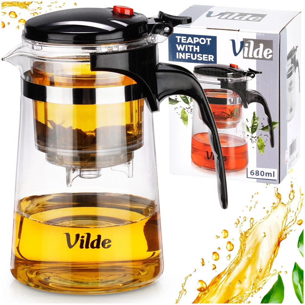 Descoperiți o soluție inteligentă și elegantă pentru iubitorii de ceai. Această cană din sticlă cu infuzor în două faze cu sistem de scurgere prepară o infuzie curată, fără frunze: în camera superioară extrageți delicat o esență concentrată, iar printr-o singură apăsare o eliberați în recipientul inferior. Imediat puteți adăuga apă și continua pregătirea unei noi porții din aceeași esență.