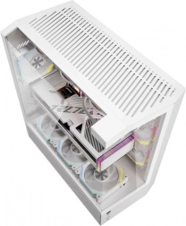 Instalați până la 10× ventilatoare de 120 mm și răcire cu lichid cu radiator de până la 360 mm în partea superioară. Carcasa este concepută pentru temperaturi stabile chiar și în timpul jocurilor AAA și al aplicațiilor solicitante.