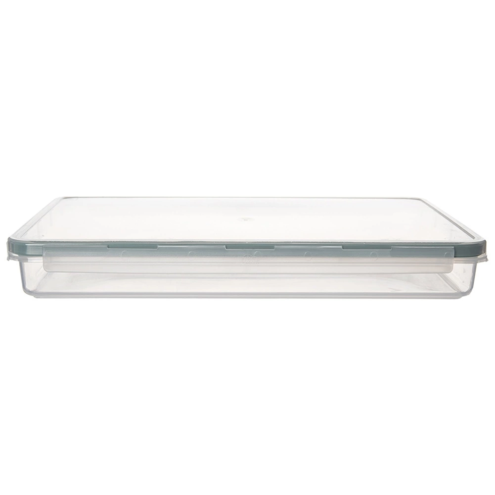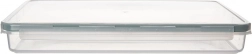 Cutie dreptunghiulară, joasă (32,5 × 21,5 × 4 cm) cu volum de 1,5 l, ideală pentru păstrarea brânzeturilor, mezelurilor, mâncărurilor gata sau snackurilor. Construcția rezistentă, ușoară și transparentă facilitează organizarea și găsirea rapidă a alimentelor fără deschideri inutile.