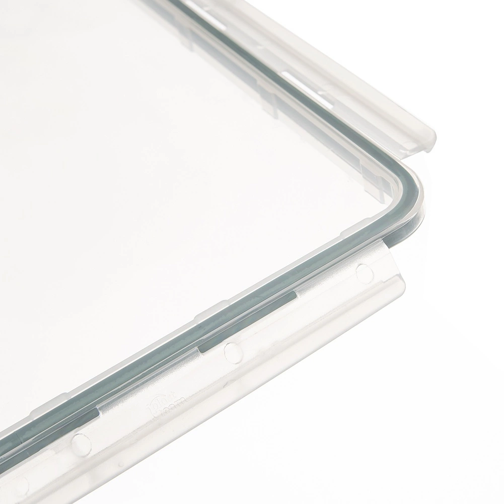 Capacul cu 4 cleme și inserție de etanșare din silicon împiedică pătrunderea aerului și a umezelii, astfel alimentele rămân proaspete mai mult timp. Cutia este rezistentă în intervalul -20 °C până la +100 °C, se poate spăla în mașina de spălat vase, folosi în cuptorul cu microunde (fără capac), depozita în frigider și congelator.