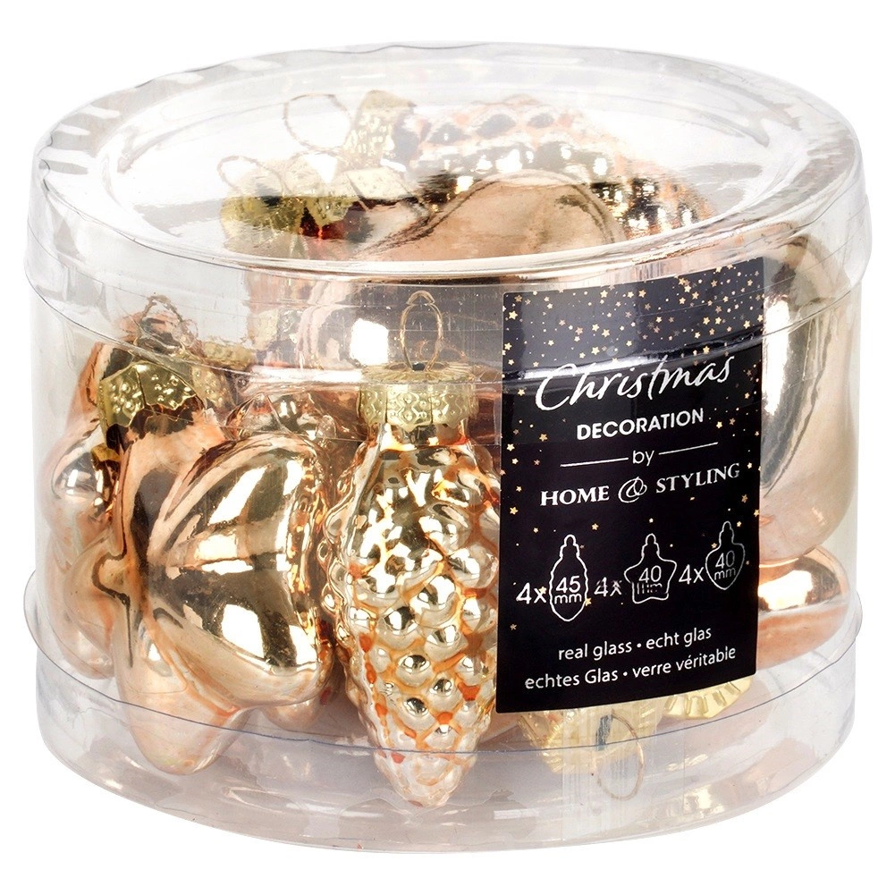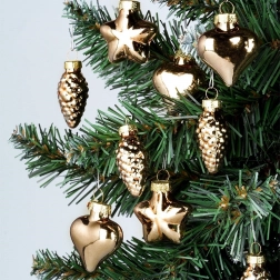 Mixul echilibrat de forme și dimensiuni facilitează decorarea bradului, a coroanelor și ghirlandelor. Urechea practică permite agățarea rapidă pe crenguțe.