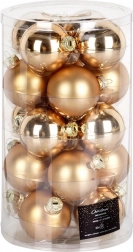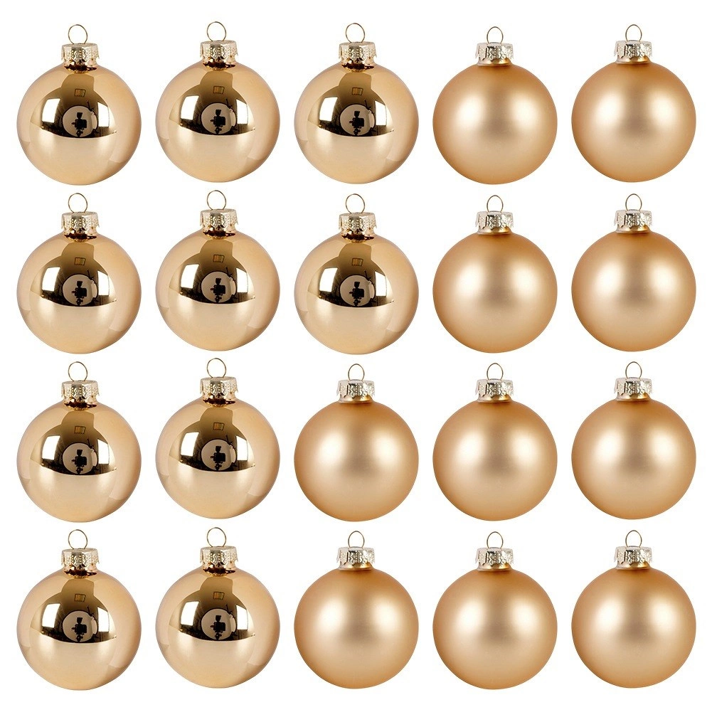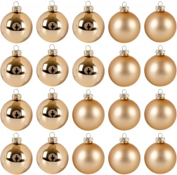 Îmbogățește bradul de Crăciun cu un set stilat de ornamente aurii din sticlă, cu un aspect atemporal și elegant. Datorită combinației de 10 globuri lucioase și 10 mate, vei obține un contrast armonios și reflexii frumoase ale luminilor. Sticla de înaltă calitate subliniază aspectul premium al întregii decorări.