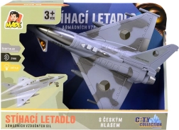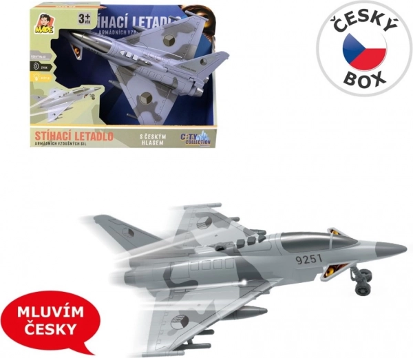 Bucură-te de misiuni aeriene pline de acțiune cu un avion de vânătoare detaliat, decorat cu însemnele naționale ale Republicii Cehe. Modelul oferă dialoguri autentice în cehă între turnul de control și pilot, efecte luminoase și sunet de avion de vânătoare în zbor, care amplifică atmosfera de joc.