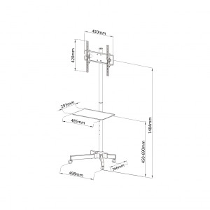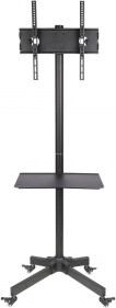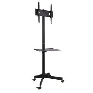 Suportul TV mobil S-09 permite mutarea în siguranță și comodă a televizorului sau a displayului între încăperi. Construcția metalică robustă, vopsirea de calitate și detaliile bine gândite garantează o durată de viață lungă și siguranță în utilizarea zilnică. Raftul central oferă spațiu pentru player, set-top box sau unitate de videoconferință.
