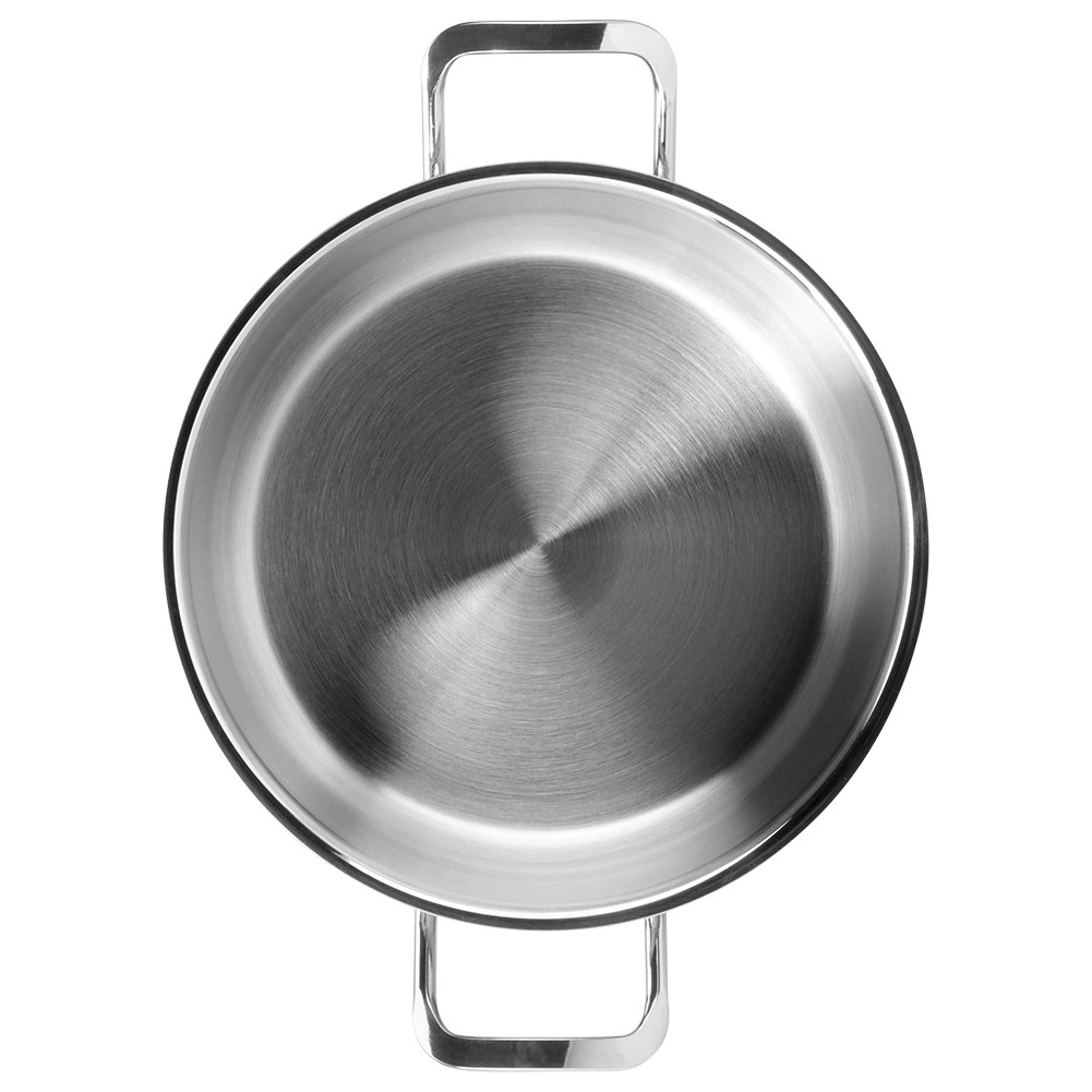 Fundul acutermic multistrat acumulează și distribuie excelent căldura, astfel încât gătiți economic și cu mai puțină grăsime – fără pierderi inutile de vitamine și minerale. Mânerele confortabile facilitează manipularea, iar capacul din inox inclus susține gătirea rapidă și uniformă.