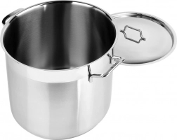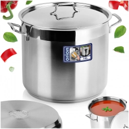 Oala din inox ANETT 28 cm oferă un volum generos de 14 litri pentru supe, ciorbe, sosuri și conservare. Construcția cu pereți groși din oțel 18/10, cu finisaj mat și bandă lucioasă, asigură rezistență ridicată, stabilitate și un aspect elegant în orice bucătărie. Baza akutermică multistrat acumulează excelent și distribuie uniform căldura, astfel încât gătiți mai rapid și mai economic.