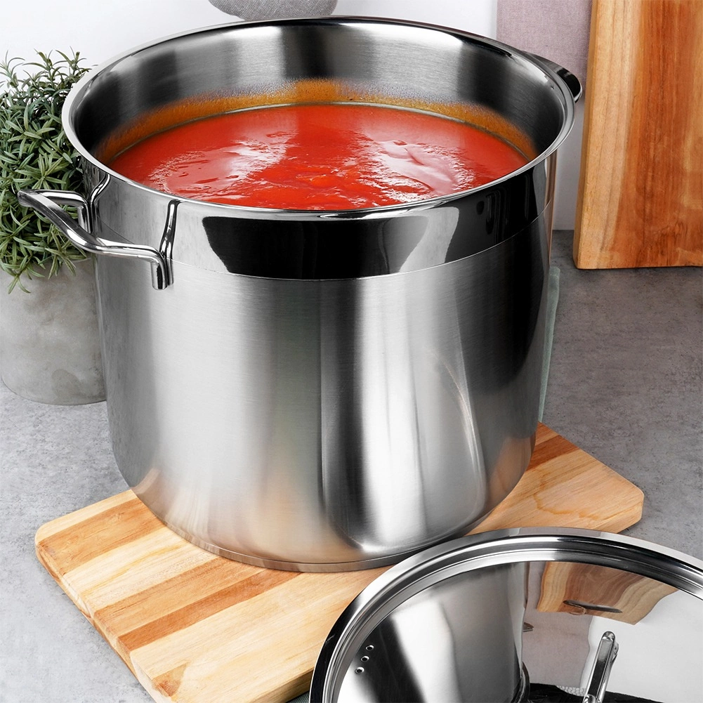 Ideală pentru porții mari de supe, ciorbe sau sosuri. Capac care se potrivește perfect și diametru mare de 28 cm pentru control ușor al gătitului și amestecare confortabilă.