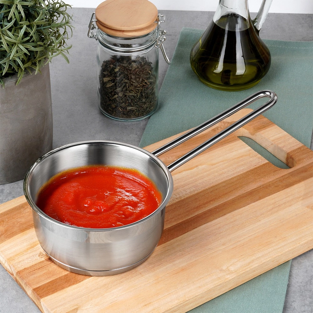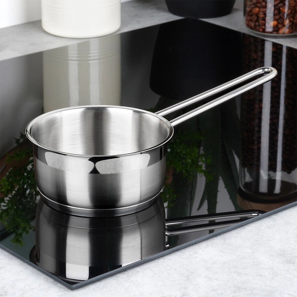 Crăticioara practică din oțel inoxidabil de calitate, într-o culoare elegantă argintie, impresionează prin durabilitate și versatilitate. Datorită dimensiunilor compacte, este excelentă pentru încălzirea laptelui, sosurilor sau garniturilor și se potrivește foarte bine și în bucătăriile mai mici.