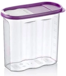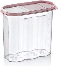 Recipient de bucătărie practic, cu volum de 1,7 l, prevăzut cu capac cu dozator, care ușurează depozitarea făinii, zahărului, cerealelor sau cerealelor pentru micul dejun. Datorită corpului transparent, aveți conținutul mereu sub control, iar datorită măsurii laterale din 250 ml măsurați ușor cantitatea necesară. Recipientul este fără BPA, rezistent și potrivit pentru mașina de spălat vase, cuptorul cu microunde, frigider și congelator.