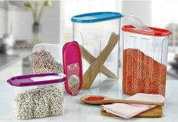 Recipientul este fabricat din plastic de calitate, fără BPA, conform standardelor europene. Potrivit pentru făină, zahăr, griș, orez, leguminoase, fulgi și alte ingrediente vrac. Capacul este disponibil în culori diferite (expediem aleatoriu). Același tip de recipiente poate fi stivuit practic.