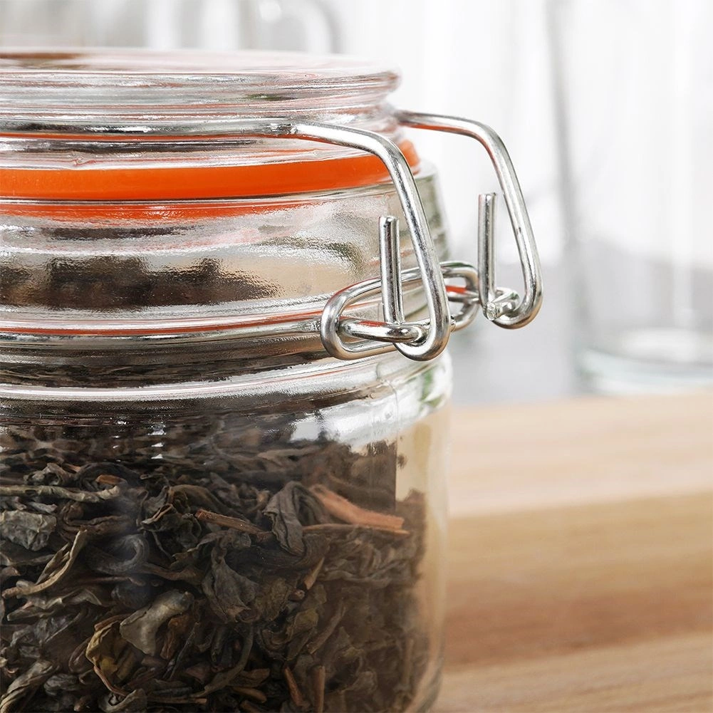 Acest borcan stilat și rezistent, cu închidere tip patent, este o alegere excelentă pentru utilizare zilnică în bucătărie, dar și ca ambalaj cadou pentru bunătățile de casă. Depozitați condimente, gemuri, miere, piureuri și fructe mărunte – totul în siguranță și bine organizat datorită închiderii perfect etanșe.