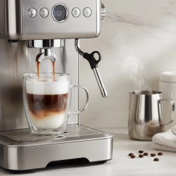 Execuția transparentă evidențiază straturile latte-ului și oferă băuturilor un aspect atrăgător – perfect pentru barista de acasă.