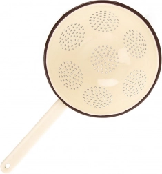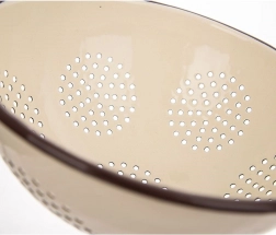 Finisajul elegant maro–bej cu elemente decorative se potrivește atât bucătăriilor moderne, cât și celor rustice. Strecurătoarea se curăță ușor și poate fi spălată în mașina de spălat vase. Datorită orificiului din mâner, o puteți agăța simplu pe o șină sau un cârlig. Vasele emailate pot avea mici neregularități de producție (de ex. mici proeminențe sau imprimare ușor asimetrică), care nu afectează calitatea sau funcționalitatea și subliniază prelucrarea sa tradițională.