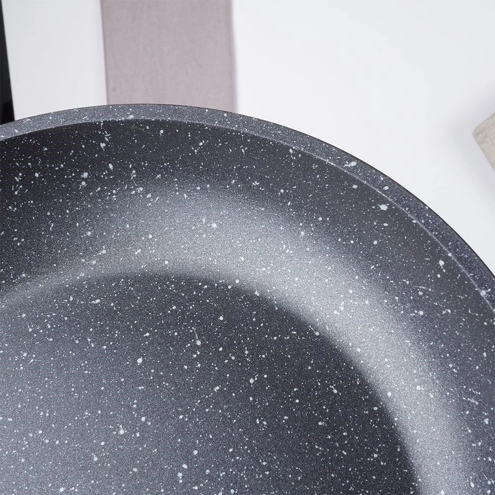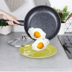 Suprafața specială cu aspect de piatră, fără PFOA și PTFE, asigură o antiaderență excelentă, eliberarea ușoară a preparatului și curățarea rapidă – ideală pentru prăjirea ouălor, cărnii și clătitelor cu minimum de ulei.