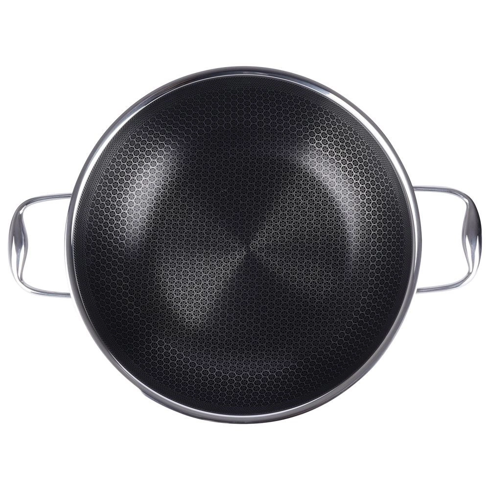 Structura hexagonală specială asigură o antiaderență excelentă și o rezistență ridicată la căldură și zgârieturi. Gătiți cu minimum de ulei și cu eliberare ușoară a ingredientelor.