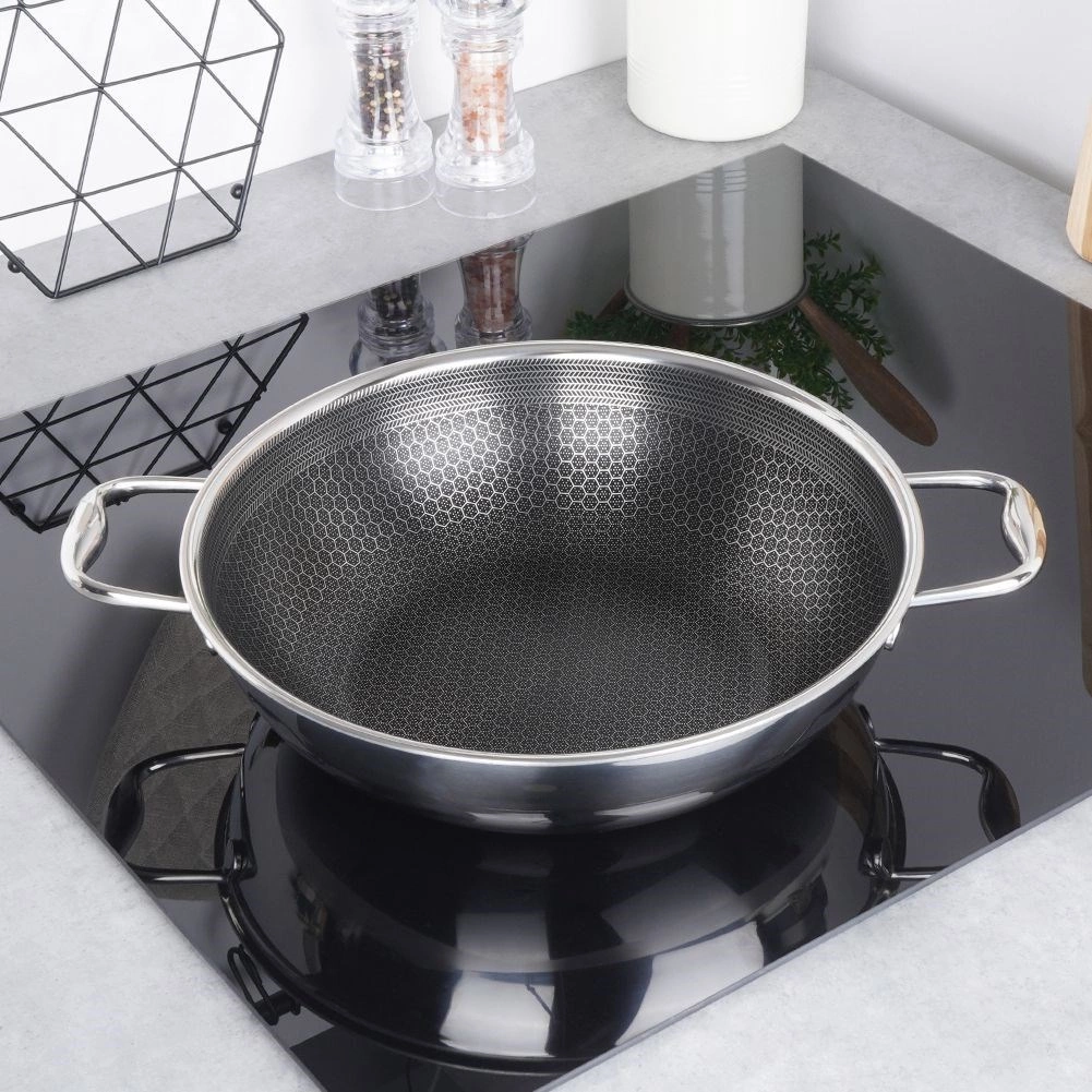 Wokul atemporal din oțel inoxidabil din seria COOKCELL HYBRID combină durabilitatea oțelului cu tehnologia antiaderentă modernă cu structură hexagonală. Datorită transferului excelent de căldură, veți prepara mâncăruri gustoase și suculente cu minimum de ulei, păstrând aroma naturală și nutrienții ingredientelor.