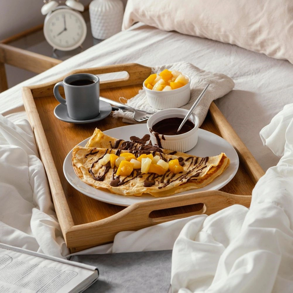 Bambusul este în mod natural rezistent la umiditate și deformări, se usucă rapid și nu absoarbe mirosurile. Tava poate fi folosită și separat – are mânere comode pentru transport sigur. Întreținere ușoară și aspect natural atemporal, potrivit pentru orice interior.
