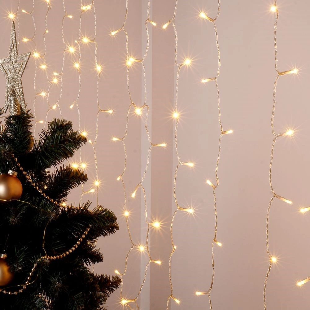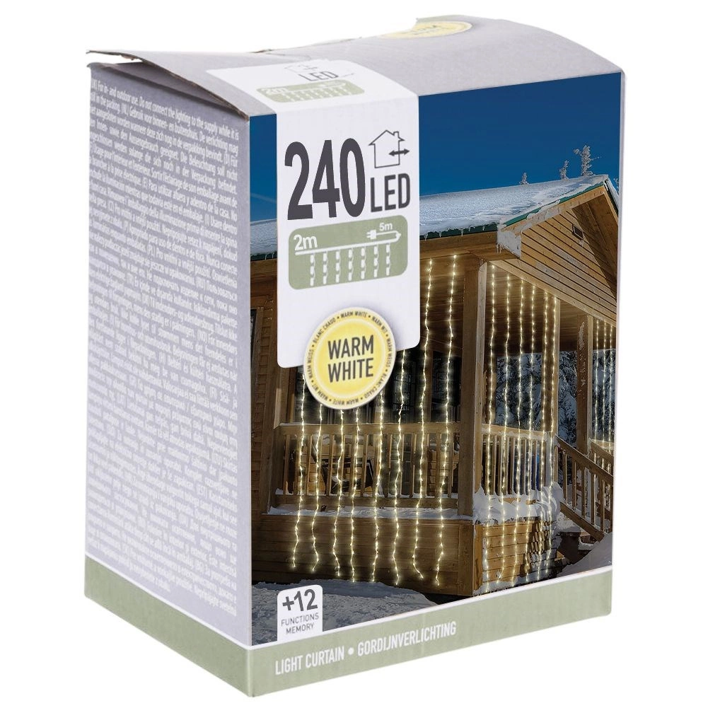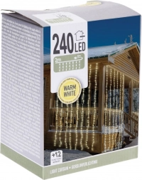 Creați o atmosferă de basm cu această cortină luminoasă cu lungime de 2 m și înălțime de 1,5 m. Drapajul este format din 16 șiruri cu în total 240 de LED-uri în alb cald, care iluminează delicat și uniform spațiul. Datorită celor 12 moduri de iluminare cu funcție de memorie, alegeți cu ușurință efectul ideal – de la clipire discretă la lumină continuă.