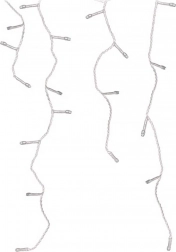 Perdeaua are fire suspendate de lungimi diferite, cu un pas de aproximativ 15 cm, și luminează continuu. De la adaptorul de alimentare pornește un cablu de 3 m, facilitând amplasarea și conectarea la priză. Datorită protecției IP44, decorațiunea este rezistentă la intemperii și sigură pentru utilizare în exterior.