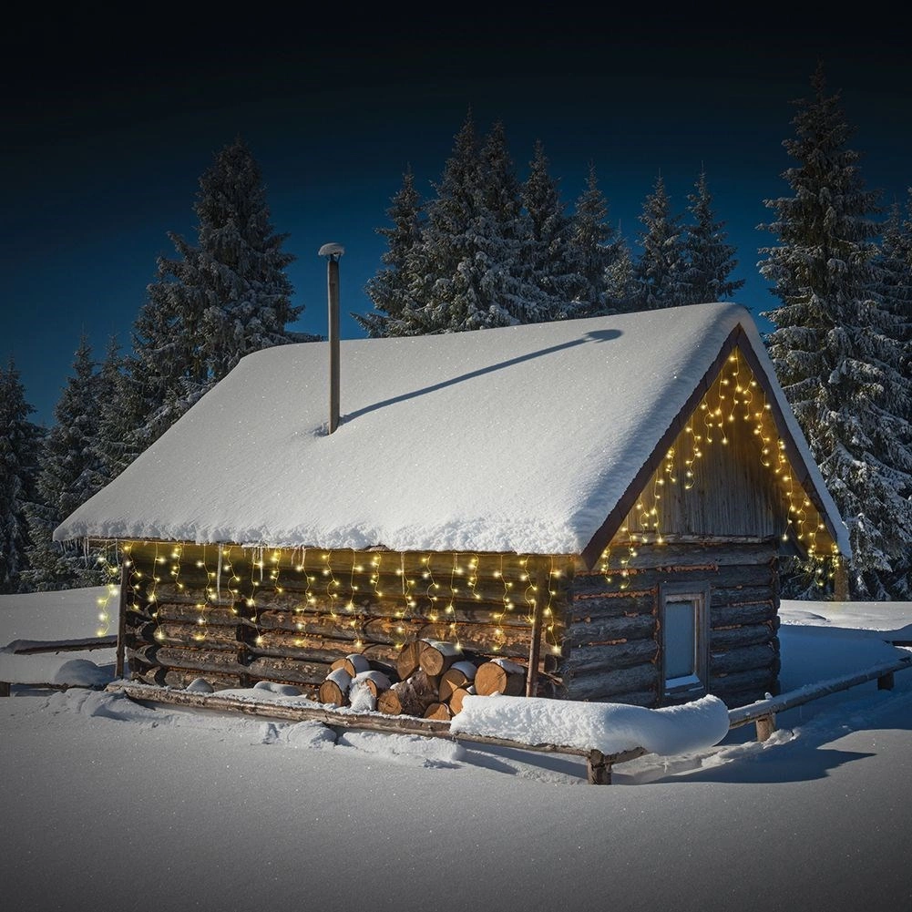 Această perdea luminoasă este o decorațiune de Crăciun ideală pentru casă și grădină. Datorită celor 180 de LED-uri eficiente în nuanță alb cald, creează o lumină armonioasă și cozy. Conductorii transparenți sunt discreți și pun în valoare efectul luminos.